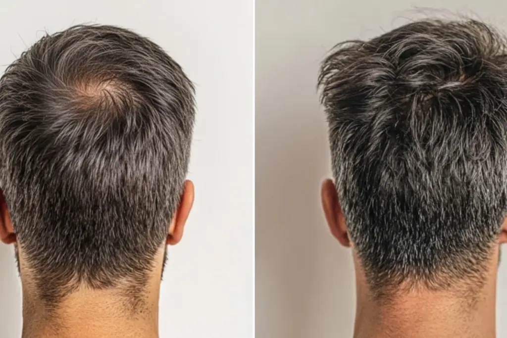 “Me estaba sintiendo muy inseguro por la zona que se afinaba en la parte trasera de mi cabeza. Sinceramente, no esperaba mucho, pero llevo usándolo de manera constante unos meses y los resultados son innegables. Esa zona fina está casi completamente cubierta y mi cabello en general se siente más grueso. Es un enorme impulso de confianza.”